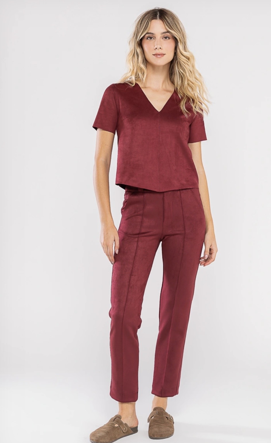 A calça é feita com um tecido encorpado, com toque aveludado de camurça, ótimo caimento e durabilidade.