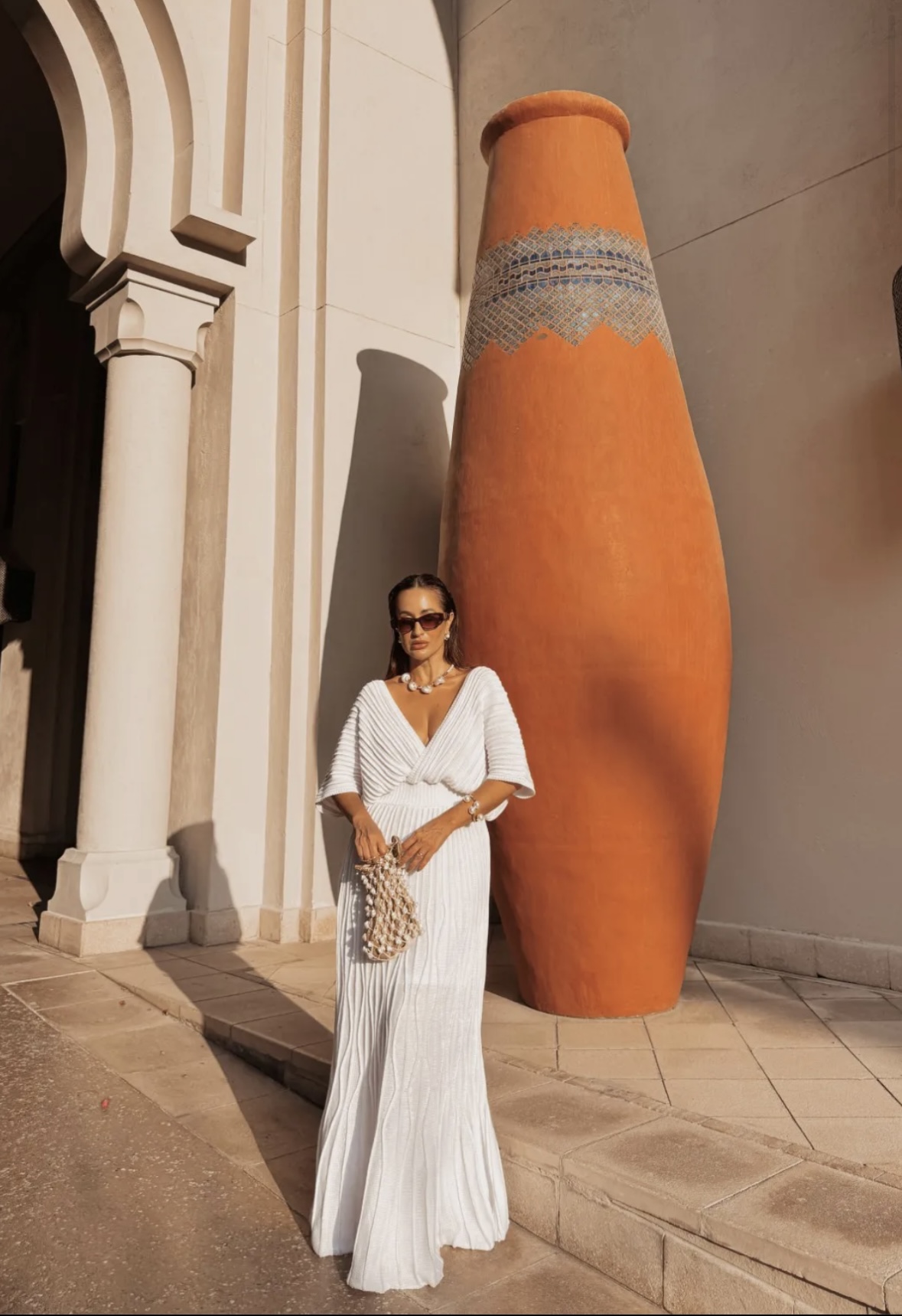 Este vestido é confeccionado em fio de rayon, fio com aspecto cintilante que traz muita sofisticação à peça! Com toque macio e caimento leve, o design transpassado valoriza a silhueta, proporcionando elegância e conforto. Com mangas delicadas e comprimento alongado, é uma peça chique e muito procurada para ocasiões mais formais.
